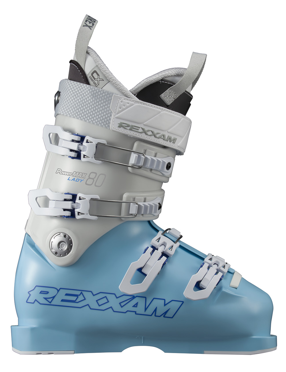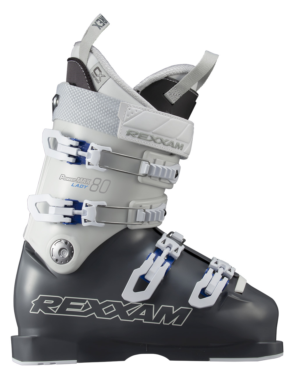 단순함 속에서도 스포츠의 활동성을 놓치지 않기 위한 디자인으로 새롭게 변경. 경량화와 뛰어난 운동성 등, 여성 스키어를 위한 다양한 배려를 담으면서도, 발을 정확하게 잡아주면서도 효율적으로 하중을 전달하기 위한, 활주를 위한 성능을 놓치지 않았다. 이것이 REXXAM의 여성 전용 모델, PowerMAX Lady! 익숙하지 않은 부정지 사면에서도 쉽게 포지션을 유지하여 스키의 조작이 원활할 수 있도록 flex를 85로 설정하였다. 어떠한 사면에서도 자유 자재로 활주하고 싶은 역동적인 여성 스키어를 위한 모델이다.